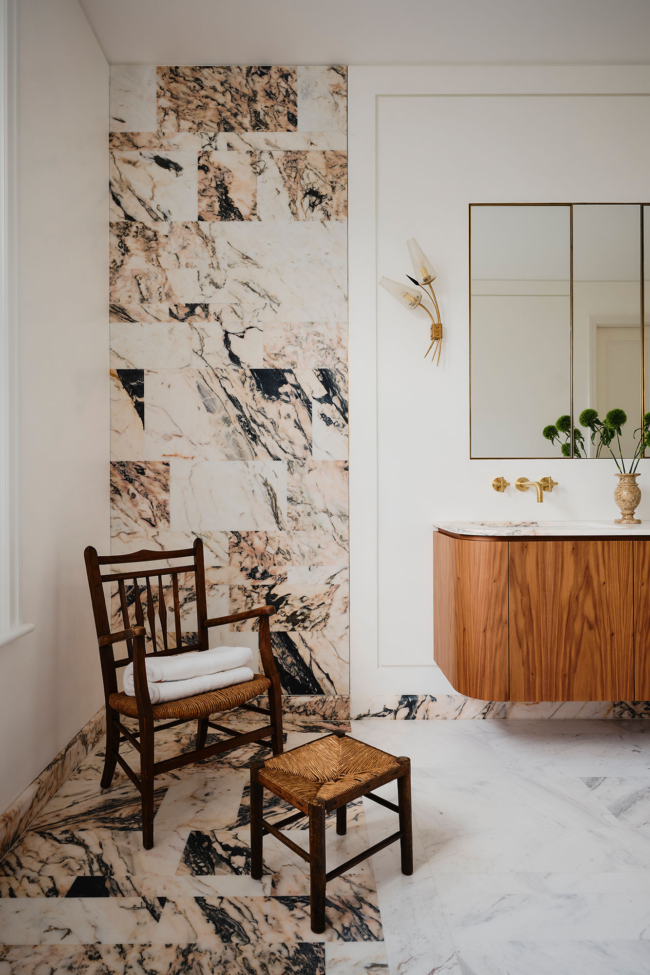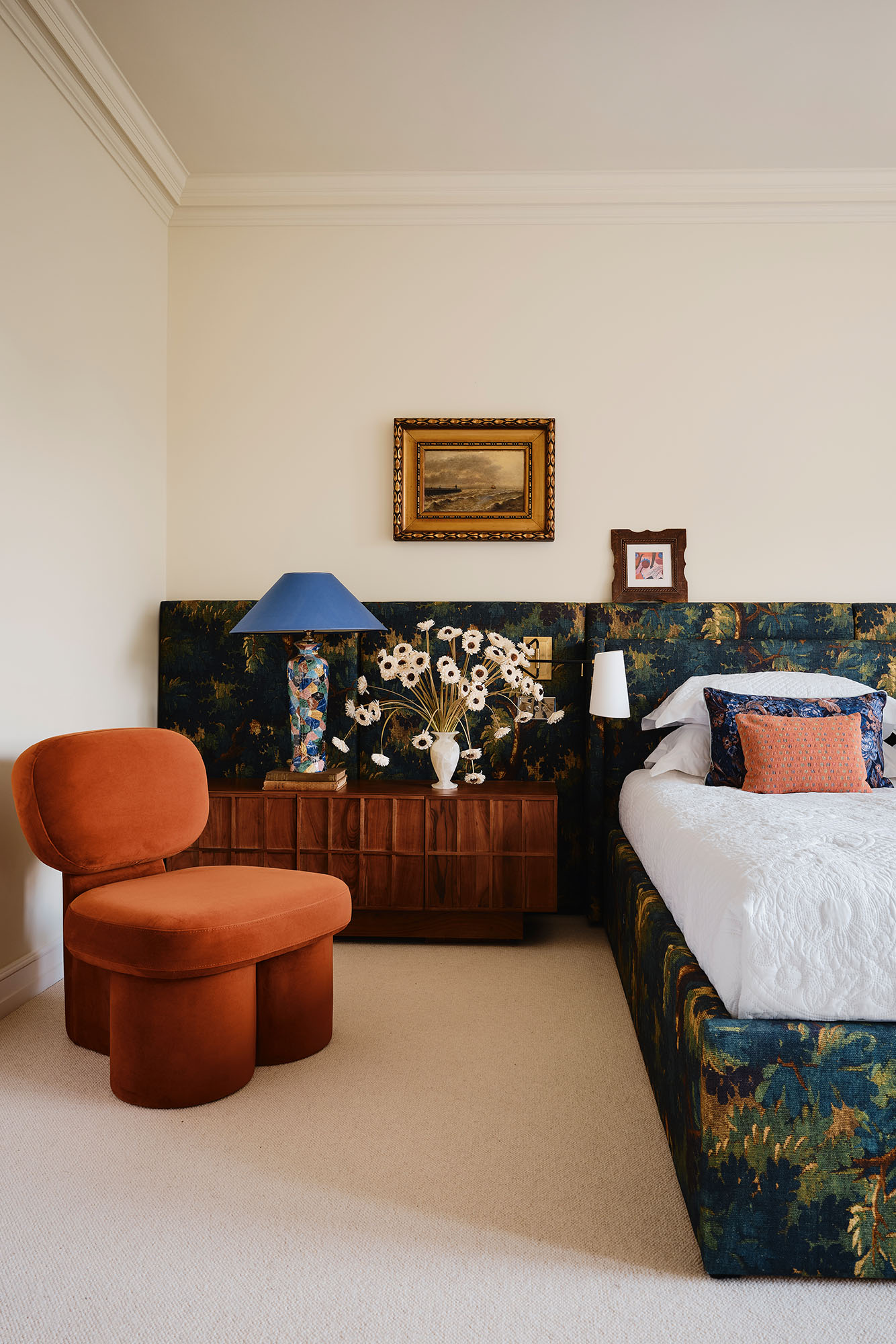 Upstairs, the principal suite features a tapestry headboard by Dedar and a Calacatta Retro marble-clad bathroom, uniting artistry, function and elevated family living.